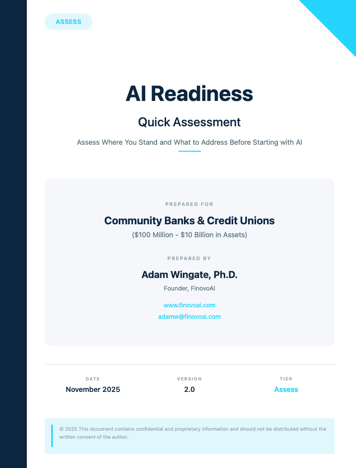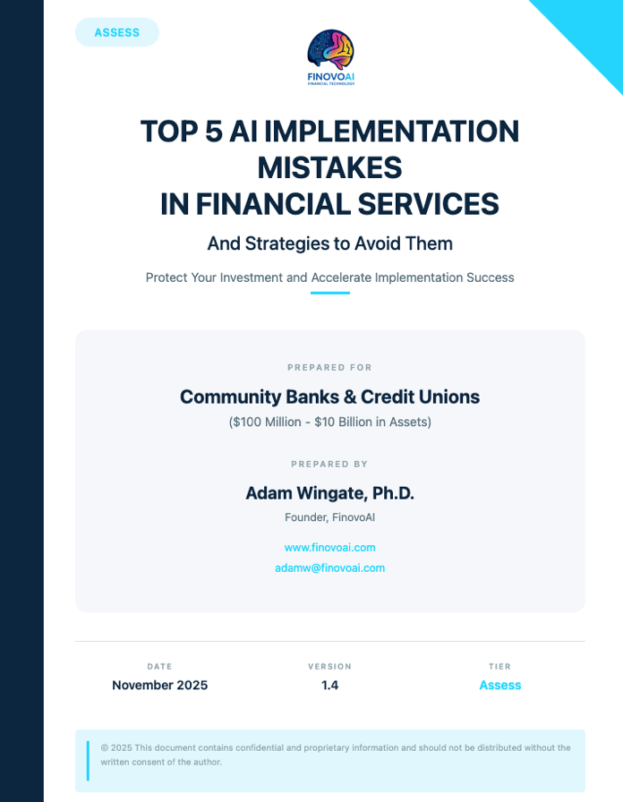 Top 5 AI Implementation Mistakes in Financial Services & Strategies to Avoid Them $0.00 AI Compliance Roadmap for Financial Institutions $697.00 AI Readiness Quick Assessment $0.00